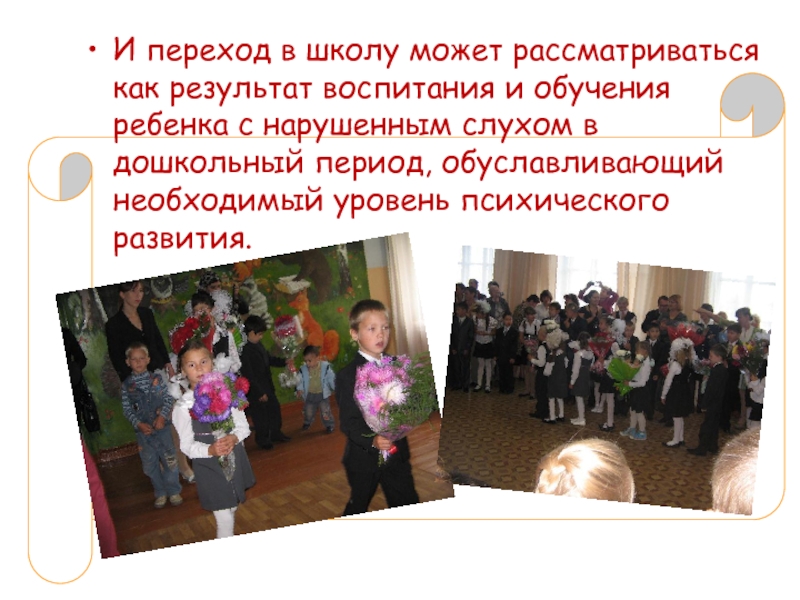 И переход в школу может рассматриваться как результат воспитания и обучения ребенка с нарушенным слухом в дошкольный