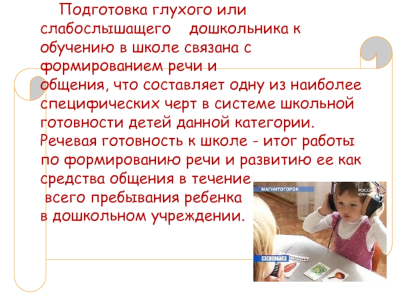 Подготовка глухого или     слабослышащего  дошкольника к обучению в школе связана