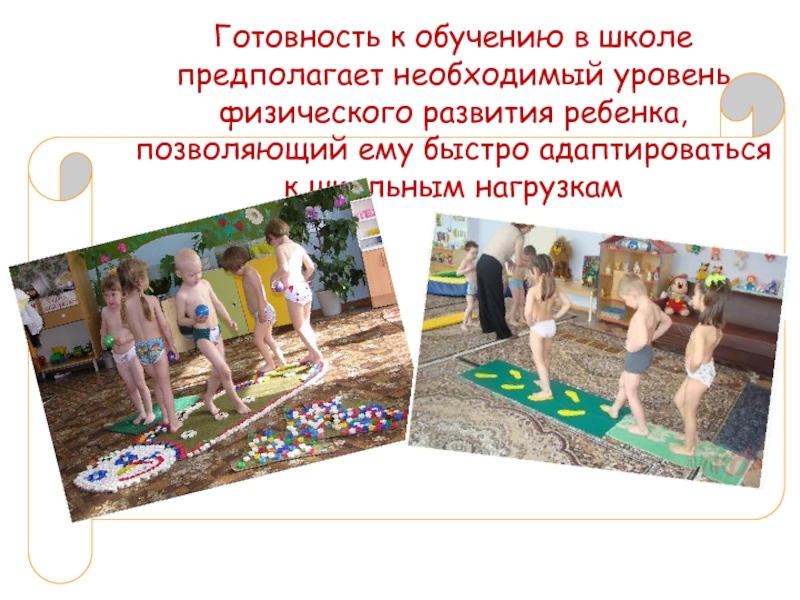 Слайд 8Готовность к обучению в школе предполагает необходимый уровень физического развития ребенка,