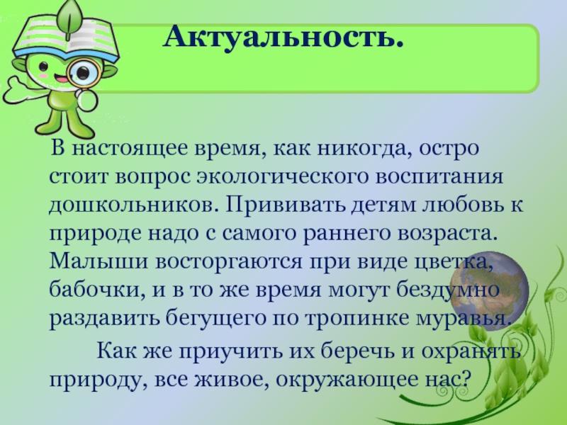 - воспитание эмоциональной установки на бережное отношение к природе не только как к источнику сырья, но и как к среде обитания