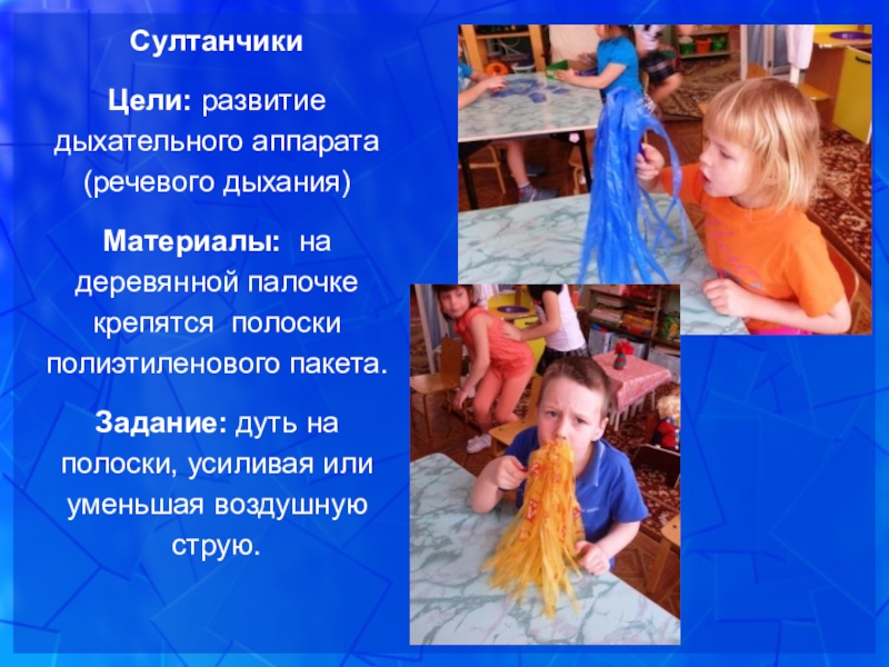 Задание: дуть на полоски, усиливая или уменьшая воздушную струю.