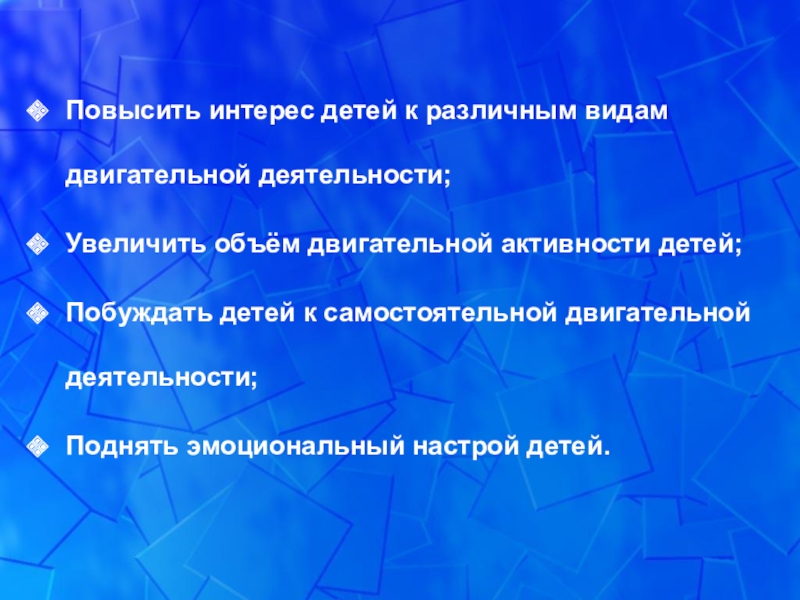 Повысить интерес детей к различным видам двигательной деятельности;