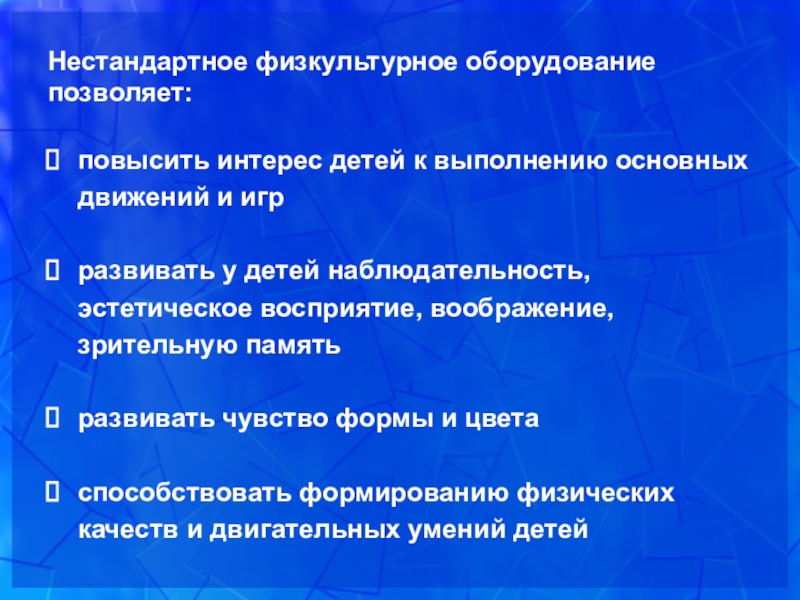 Слайд 5Нестандартное физкультурное оборудование позволяет: