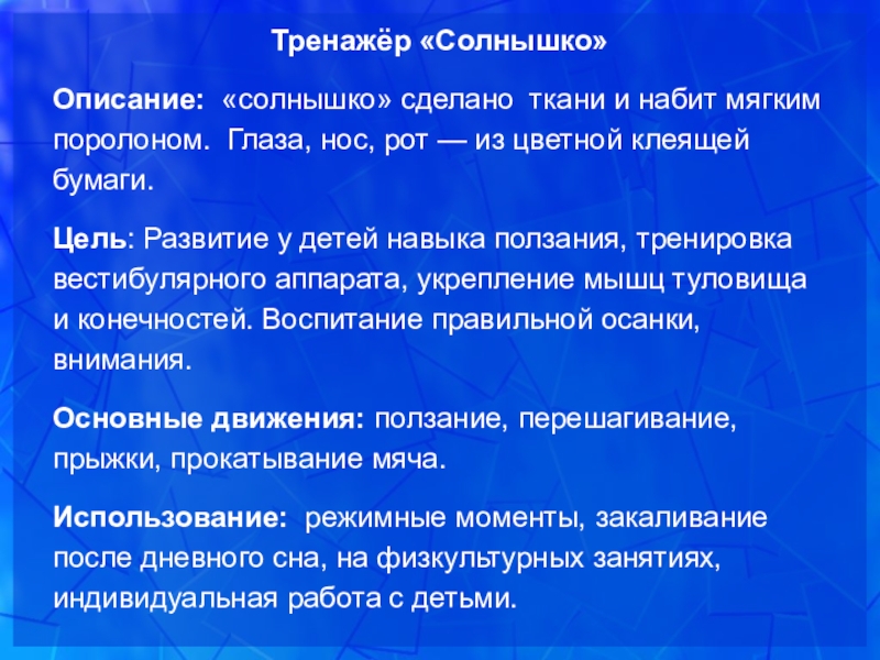 Слайд 22Тренажёр «Солнышко»