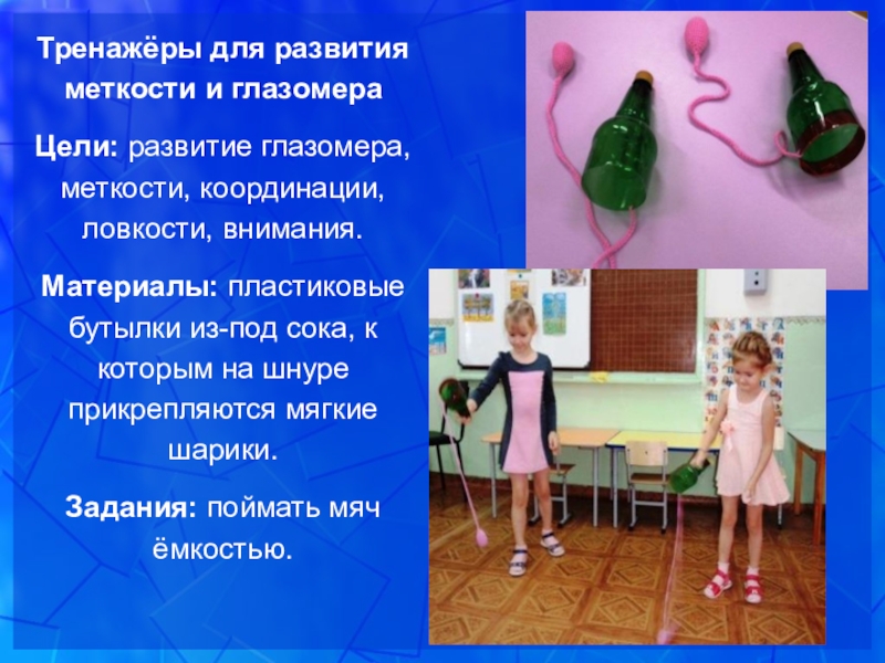 Слайд 13Тренажёры для развития меткости и глазомера