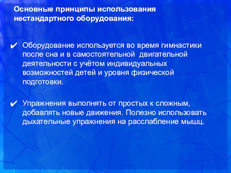 Слайд 7Основные принципы использования нестандартного оборудования: