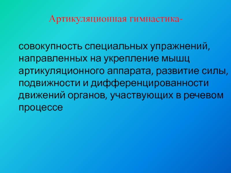 совокупность специальных упражнений, направленных на укрепление мышц артикуляционного аппарата, развитие