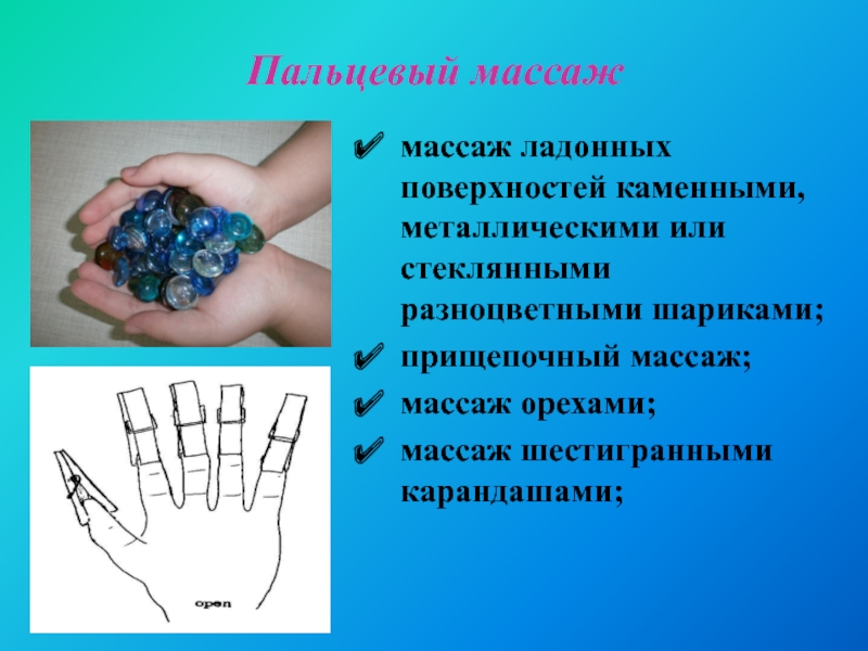 Слайд 11Пальцевый массаж