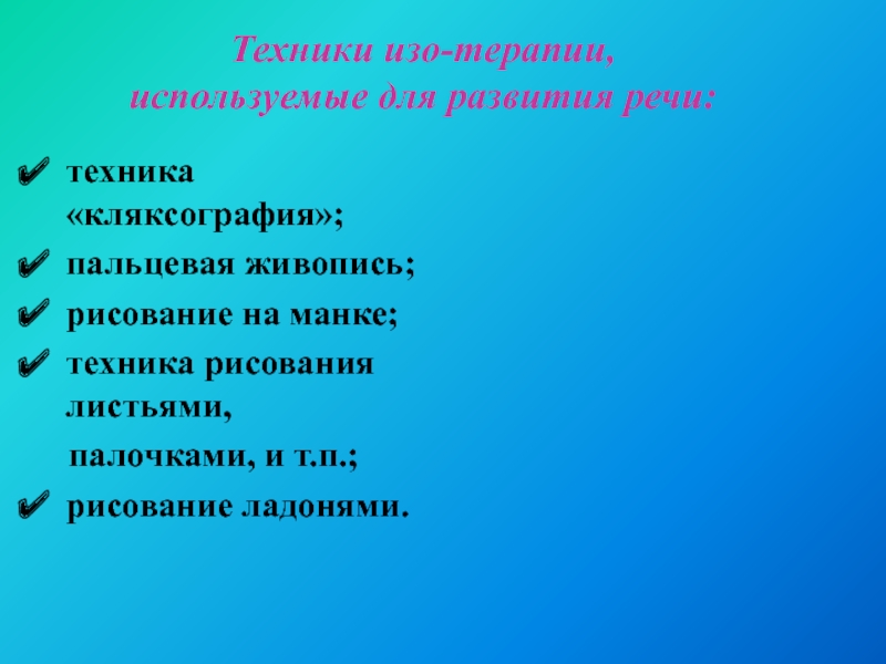 Слайд 10Техники изо-терапии,