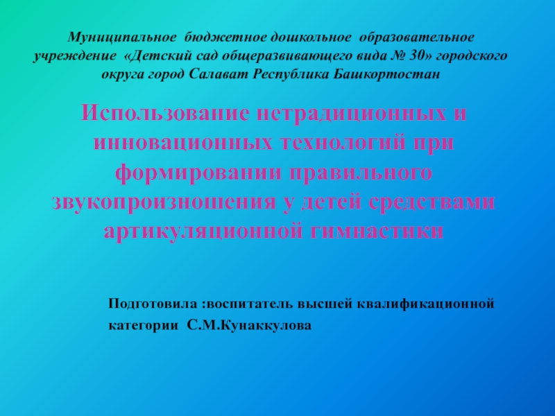 Слайд 1Использование нетрадиционных и инновационных технологий при формировании правильного звукопроизношения у детей