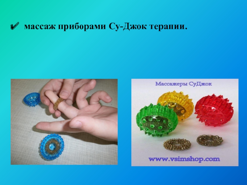 Слайд 12массаж приборами Су-Джок терапии.