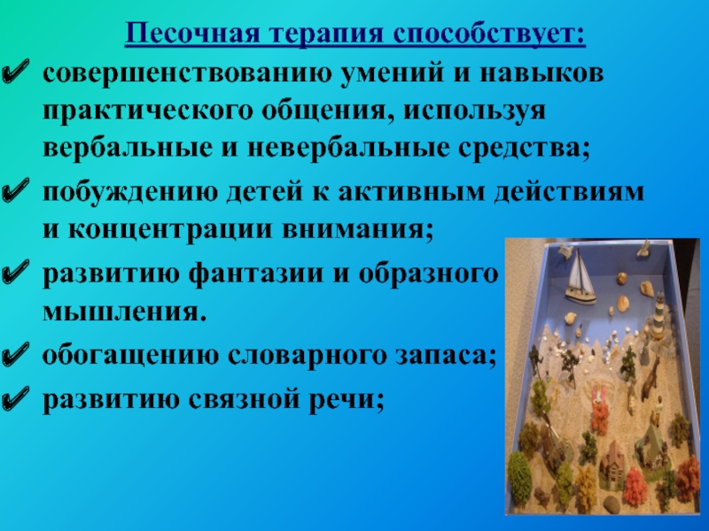 Слайд 17Песочная терапия способствует: