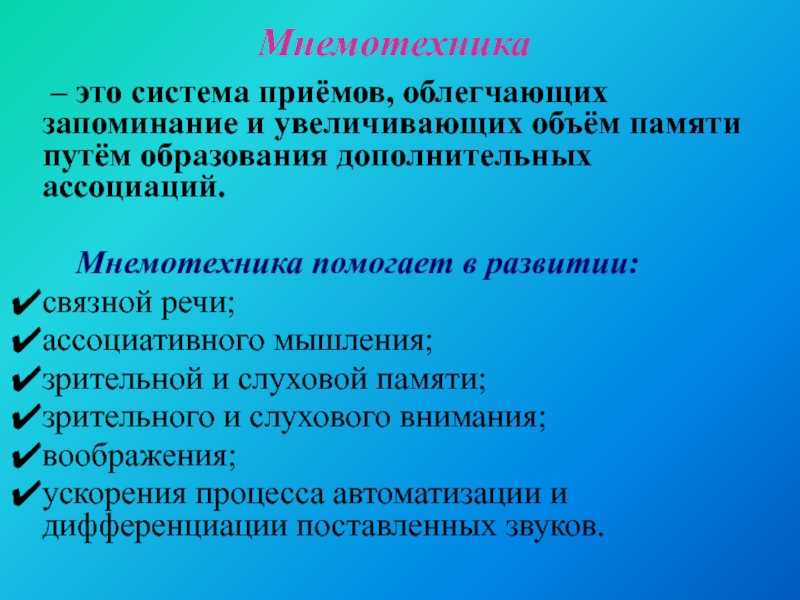 – это система приёмов, облегчающих запоминание и увеличивающих объём