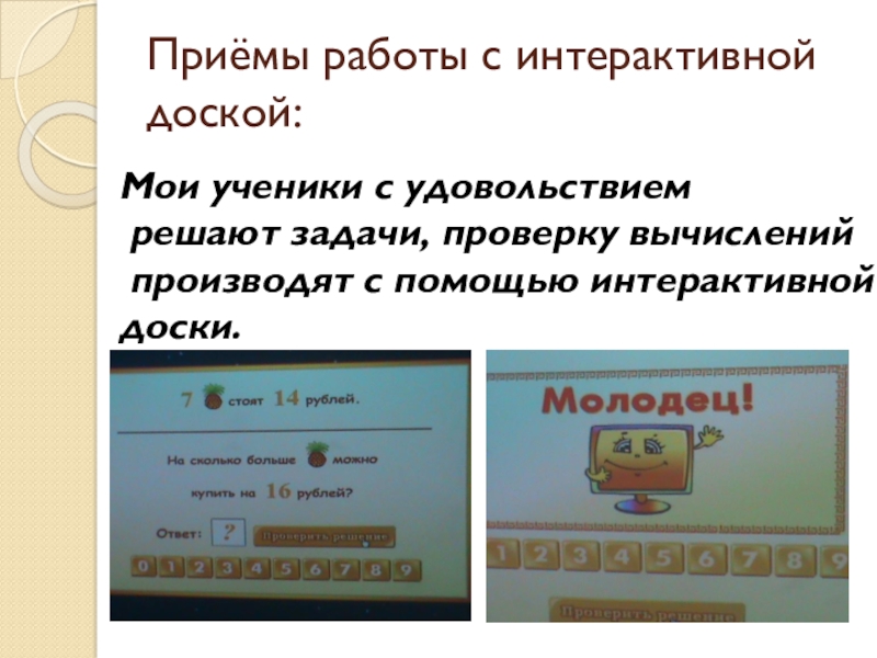 Слайд 16Приёмы работы с интерактивной доской: