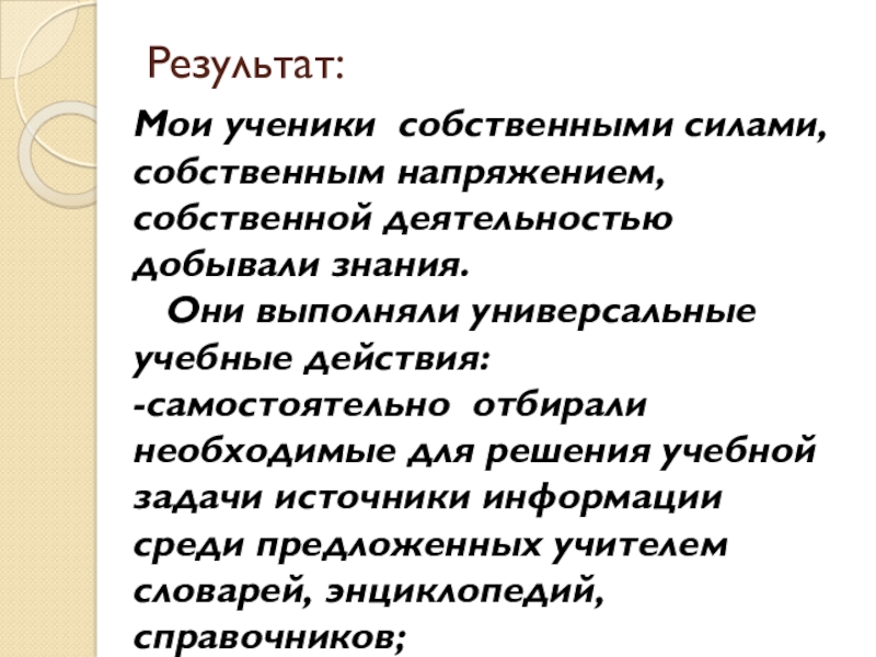 -самостоятельно отбирали необходимые для решения учебной задачи источники информации среди предложенных учителем словарей, энциклопедий, справочников;