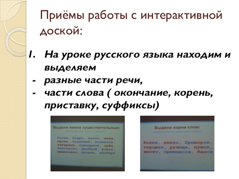 Слайд 17Приёмы работы с интерактивной доской: