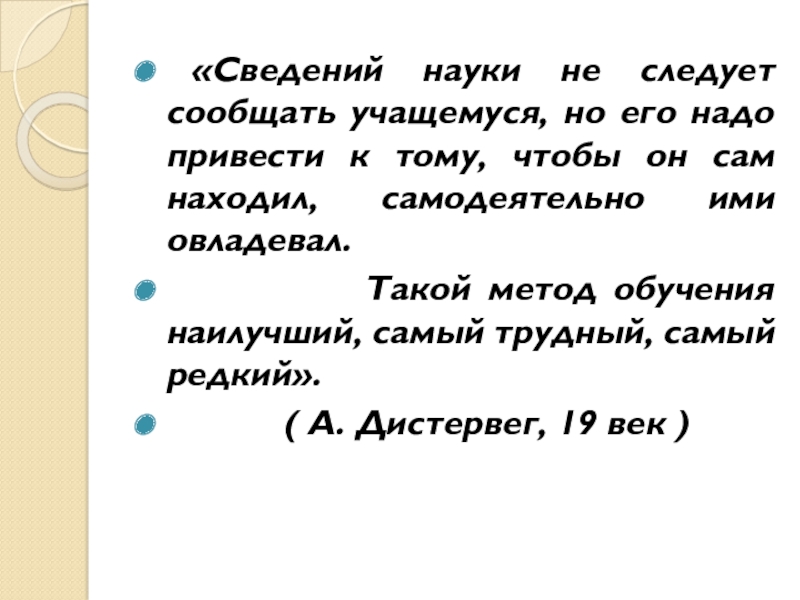 Слайд 3 «Сведений науки не следует сообщать учащемуся, но его надо привести