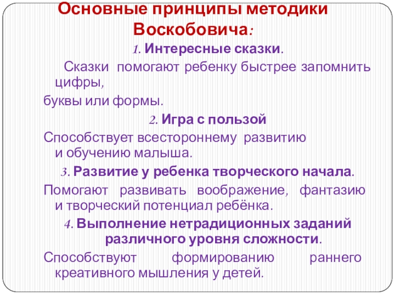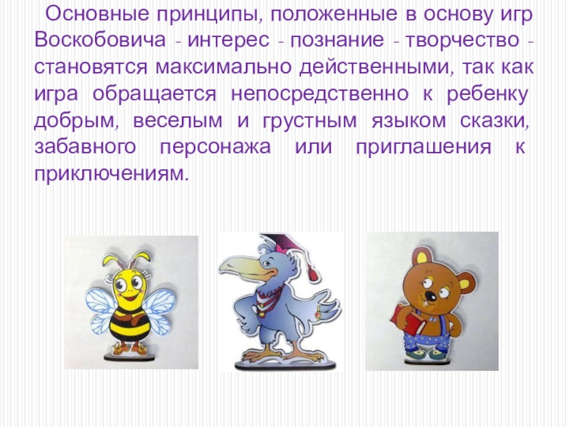 Слайд 6 Основные принципы, положенные в основу игр Воскобовича - интерес -