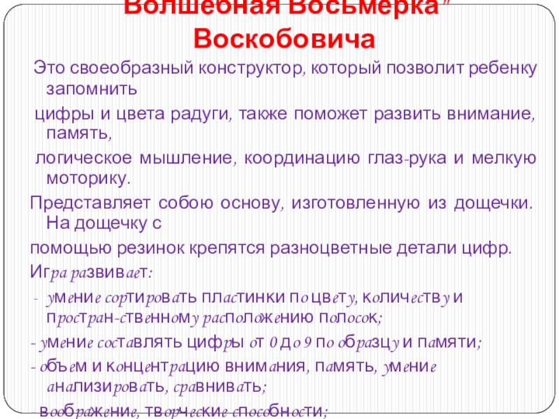 Слайд 18Волшебная Восьмерка" Воскобовича