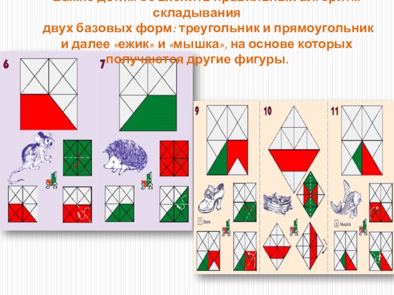 и далее «ежик» и «мышка», на основе которых получаются другие фигуры.