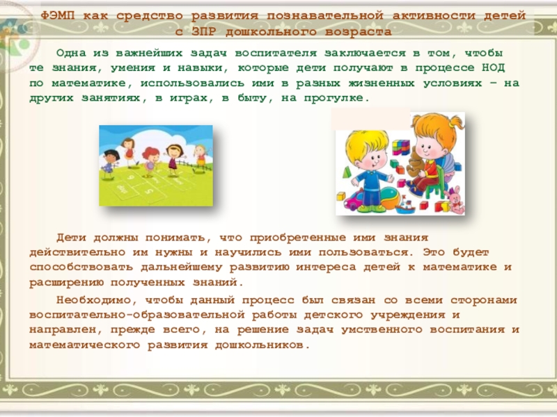 ФЭМП как средство развития познавательной активности детей с ЗПР дошкольного возраста