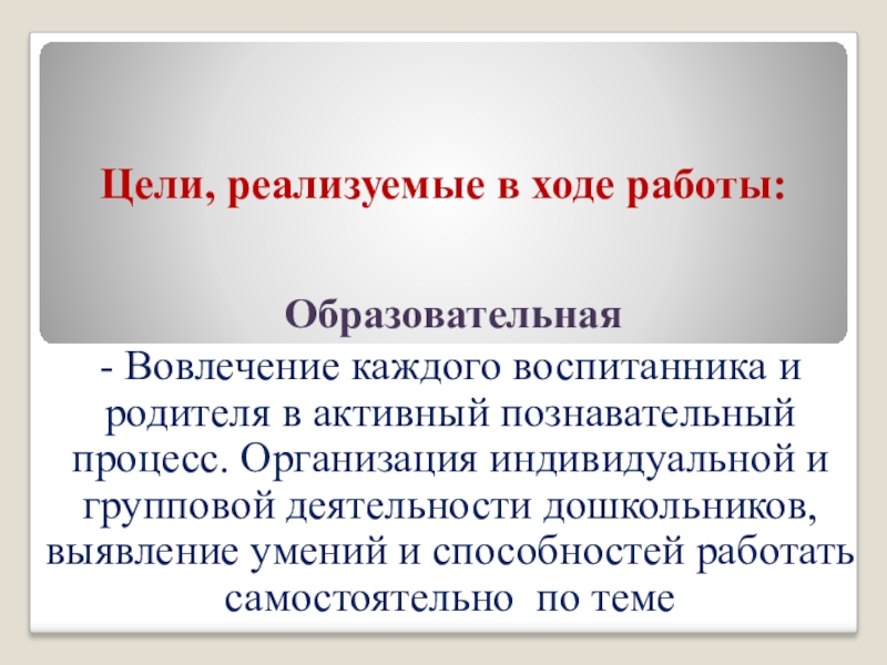 активный познавательный процесс. Организация индивидуальной и групповой деятельности дошкольников, выявление умений и способностей работать самостоятельно по теме