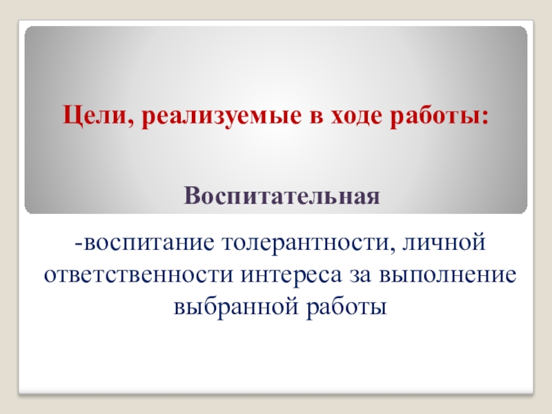 -воспитание толерантности, личной ответственности интереса за выполнение