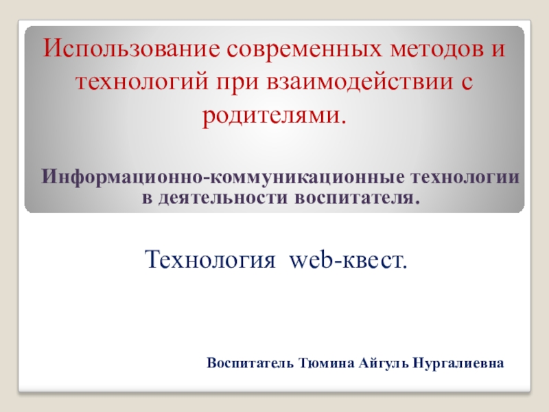 Слайд 1Использование современных методов и технологий при взаимодействии с родителями.