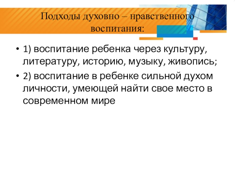 2) воспитание в ребенке сильной духом личности, умеющей найти свое место в современном мире