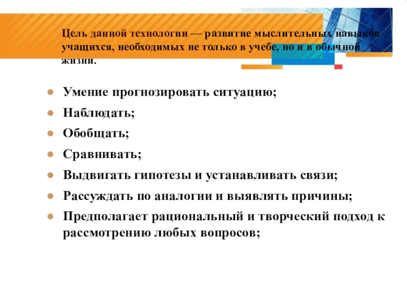 Цель данной технологии — развитие мыслительных навыков учащихся, необходимых не только в учебе, но и в обычной жизни.