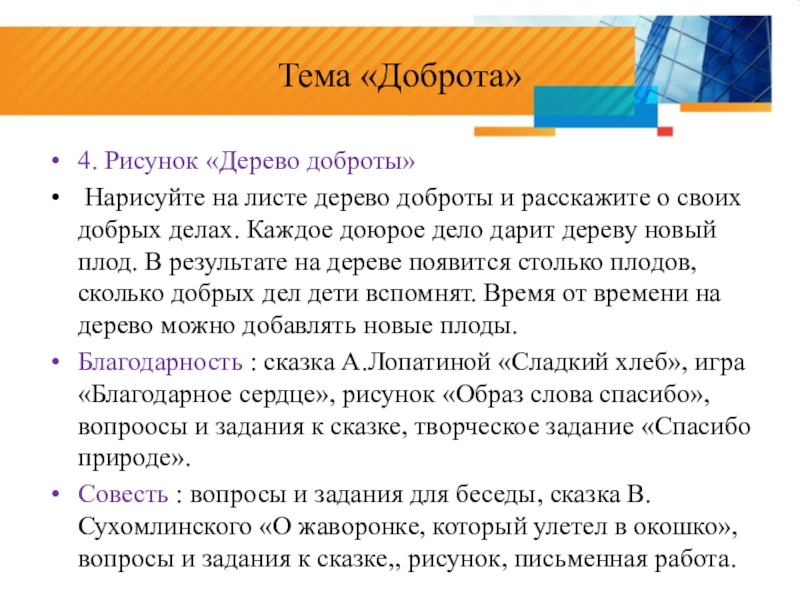 Благодарность : сказка А.Лопатиной «Сладкий хлеб», игра «Благодарное сердце», рисунок «Образ слова спасибо», вопроосы и задания к сказке, творческое задание «Спасибо природе».