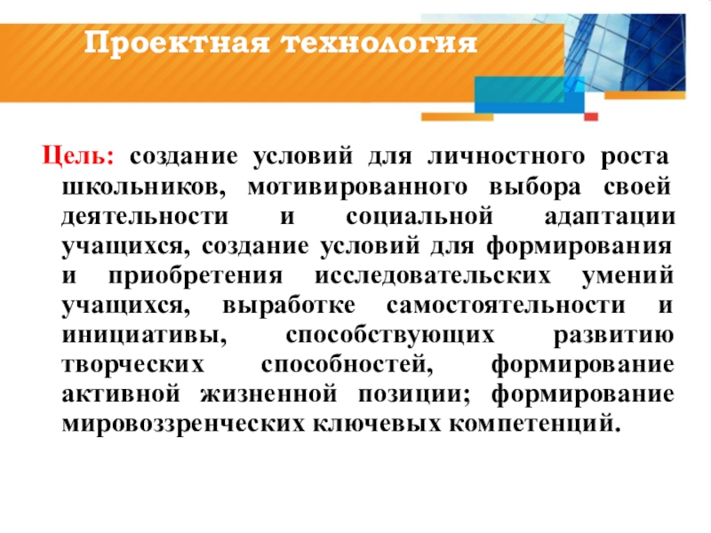 деятельности и социальной адаптации учащихся, создание условий для формирования и приобретения исследовательских умений учащихся, выработке самостоятельности и инициативы, способствующих развитию творческих способностей, формирование активной жизненной позиции; формирование мировоззренческих ключевых компетенций.