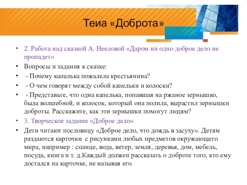 2. Работа над сказкой А. Нееловой «Даром ни одно доброе