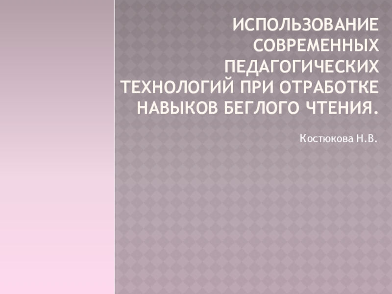 Использование современных педагогических технологий при отработке навыков беглого чтения.Костюкова Н.В.