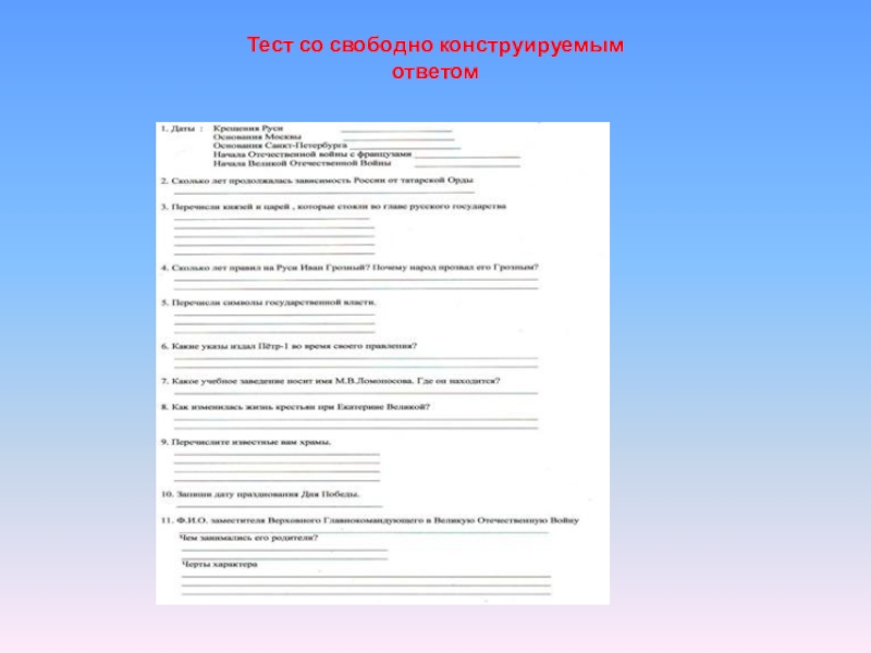 5. Тест на заполнение пропусков в истинном утверждении (тест на дополнение).