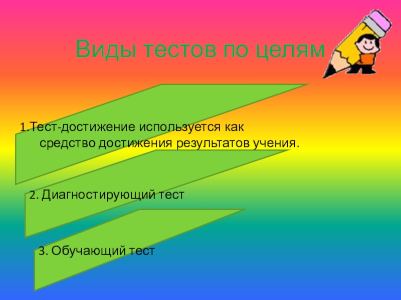 Подбор тестов по видам к предметам , изучение видов тестирования