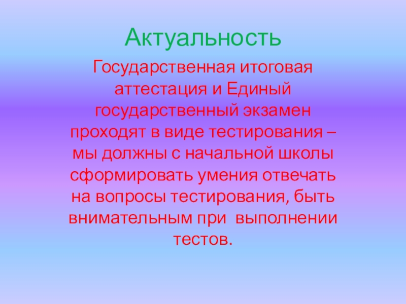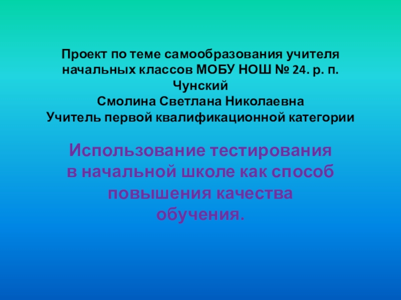 Использование тестирования в начальной школе как способ повышения качества обучения.