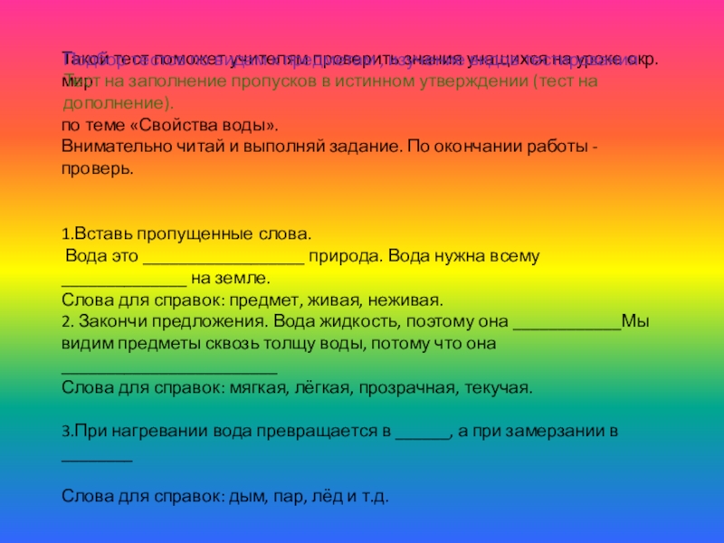 Тест на заполнение пропусков в истинном утверждении (тест на дополнение).