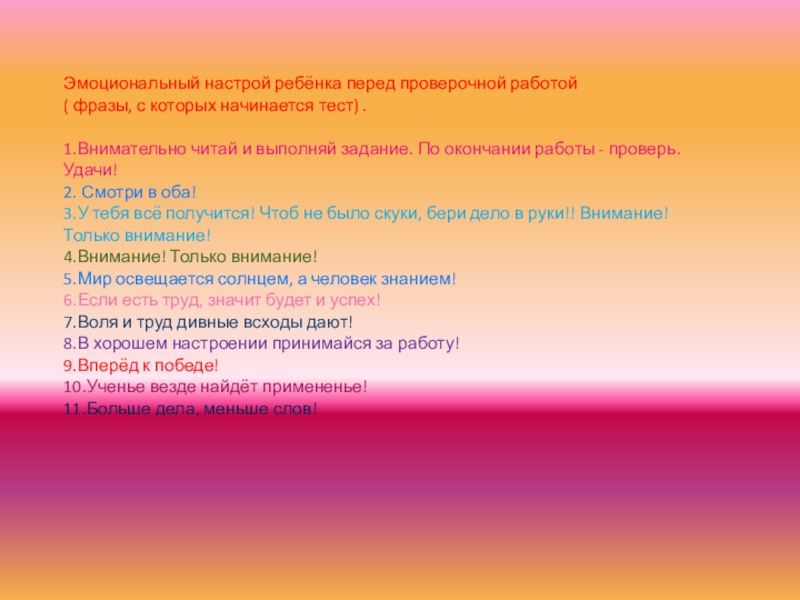 Текущее тестирование (для ликвидации пробелов и коррекции умений и знаний)