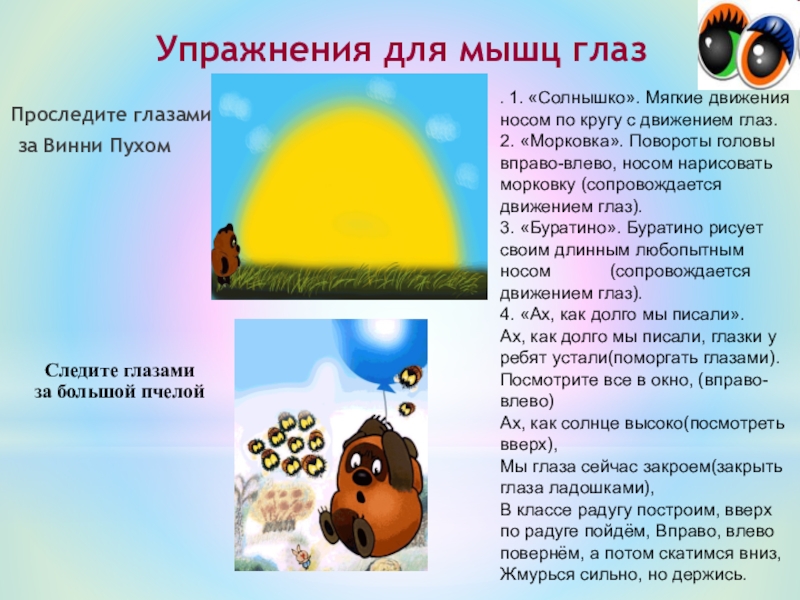 . 1. «Солнышко». Мягкие движения носом по кругу с движением глаз.