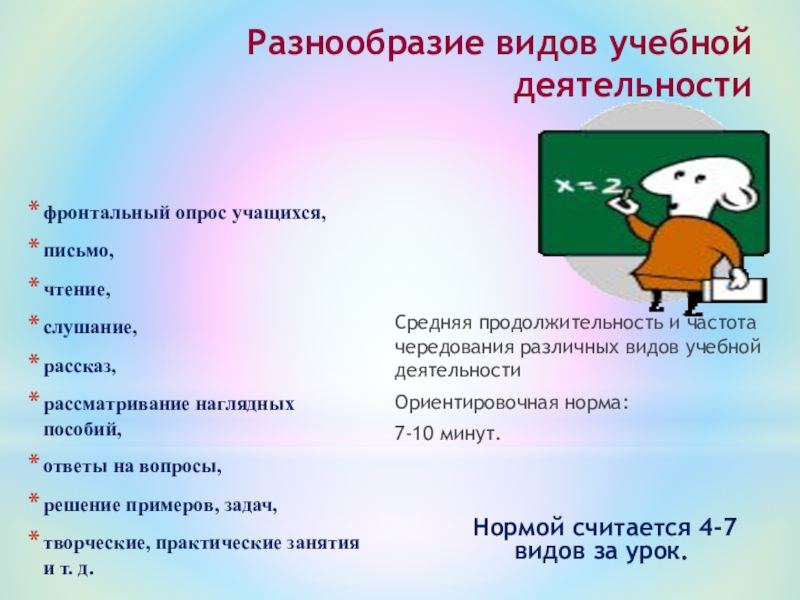 Средняя продолжительность и частота чередования различных видов учебной деятельности