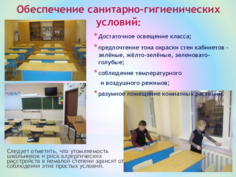 предпочтение тона окраски стен кабинетов – зелёные, жёлто-зелёные, зеленовато-голубые;