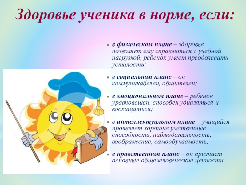 Что означает использование приемов, форм и методов организации обучения детей без ущерба для их здоровья, более того – сохранение здоровья за период обучения, обучение здоровому образу жизни, использованию полученных знаний, умений и навыков в повседневной жизни.