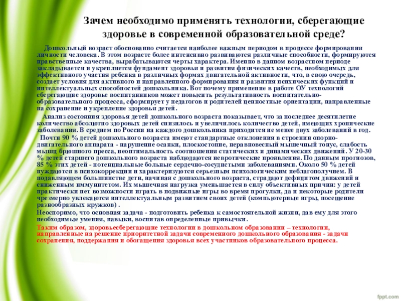 Зачем необходимо применять технологии, сберегающие здоровье в современной образовательной среде?