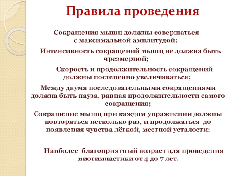 Наиболее благоприятный возраст для проведения миогимнастики от 4 до 7 лет.