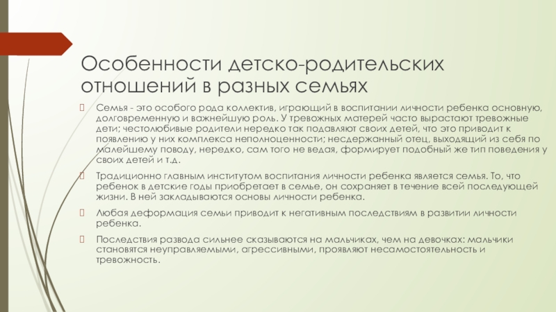 Особенности детско-родительских отношений в разных семьях