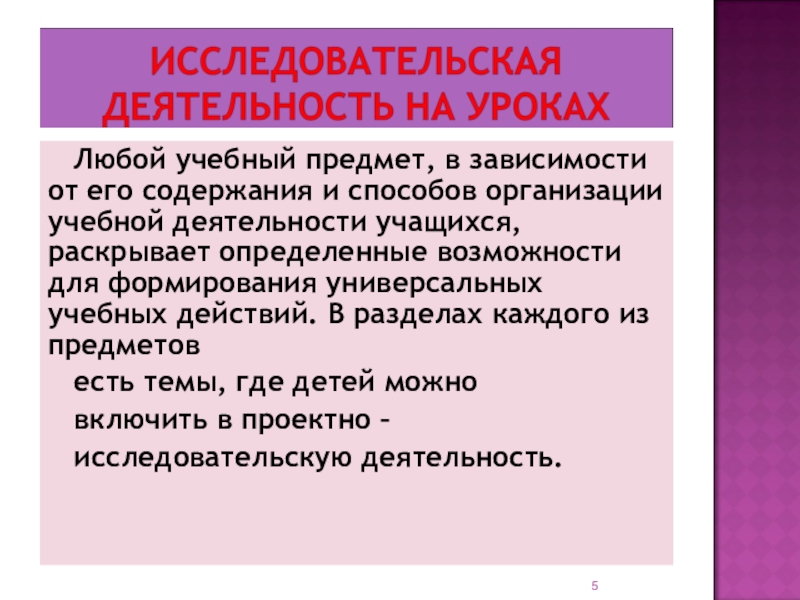 Презентация, доклад Исследовательская деятельность, как одно из условий формирования УУД