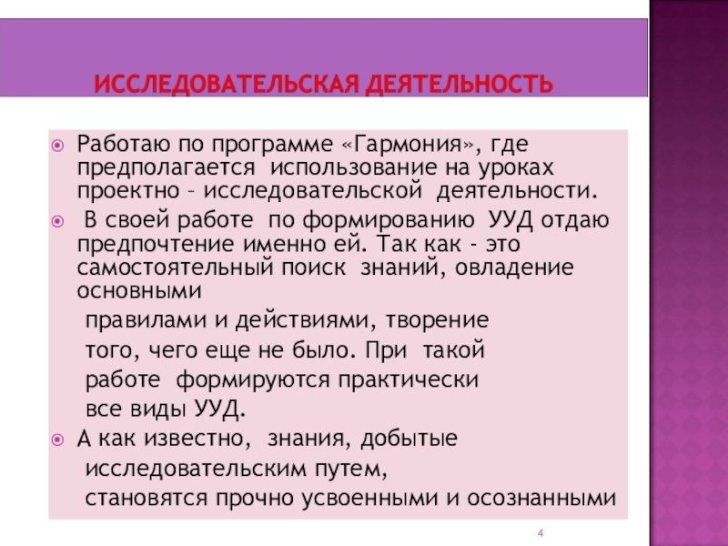 Слайд 4Работаю по программе «Гармония», где предполагается использование на уроках проектно –