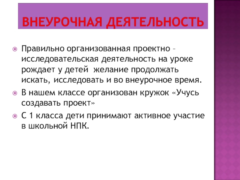 Правильно организованная проектно – исследовательская деятельность на уроке рождает у детей желание продолжать искать, исследовать и во