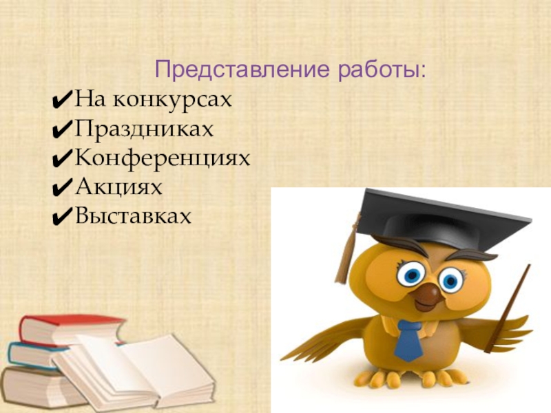 Это сайт презентаций, где можно хранить и обмениваться своими презентациями, докладами, проектами, шаблонами в формате PowerPoint с другими пользователями. Мы помогаем школьникам, студентам, учителям, преподавателям хранить и обмениваться учебными материалами.